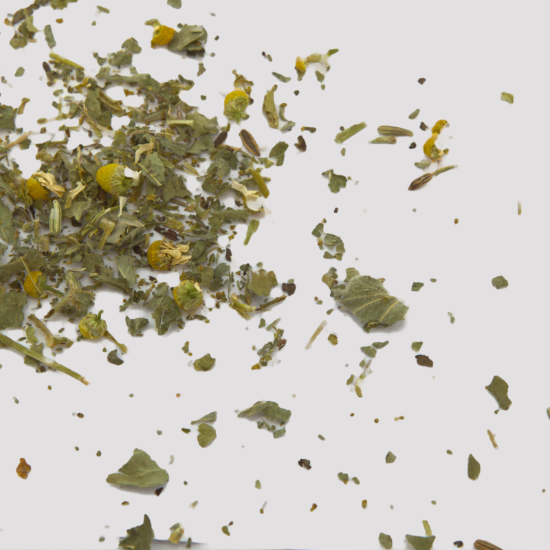 Frauenmantelkraut, Fenchelsamen, Kamillenblüten, Pfefferminze